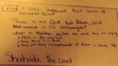 A Tennessee mother in Maury County was infuriated when one of her child’s lessons on Islam included writing, “There is no God but Allah” while learning about the Five Pillars of Islam.