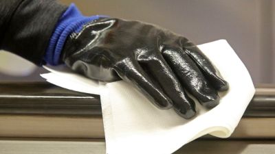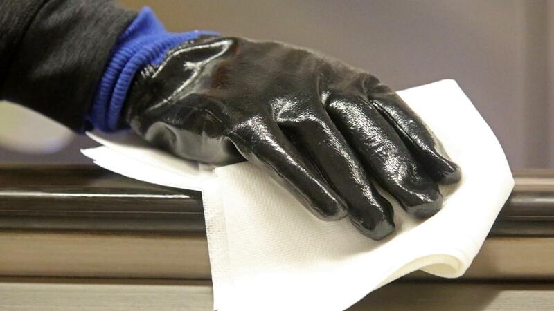 MTA cleaning staff disinfect the 86th St. Q train station on March 4, 2020 in New York City. Six people have been diagnosed with novel coronavirus in the metro New York area, including one community spread infection. Yana Paskova/Getty Images/AFP Yana Paskova / GETTY IMAGES NORTH AMERICA / AFP