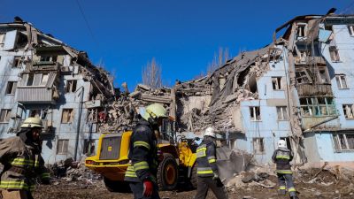 A building was targeted in an air attack by Russia according to a statement by the State Emergency Service of Ukraine (DSNS) which added that emergency services personnel consisting of 60 rescuers and 13 pieces of equipment rushed to the scene to pull out people.