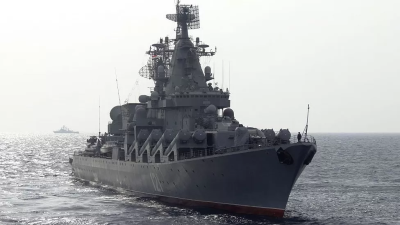 The Moskva patrolling the Mediterranean Sea off the coast of Syria (AFP File Photo)