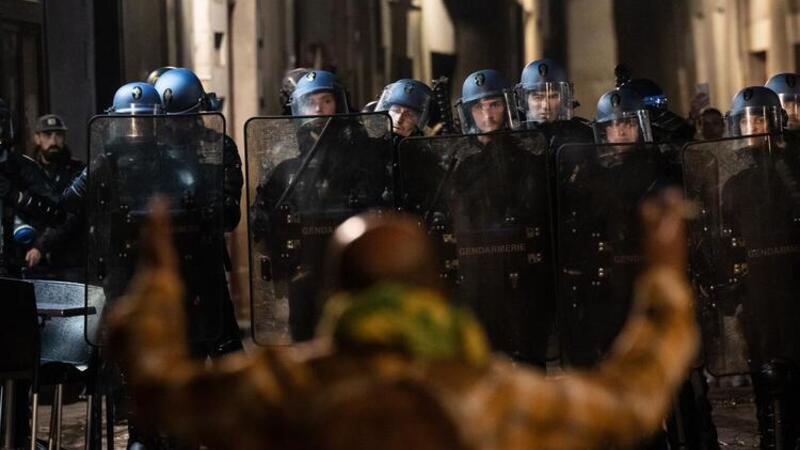 French riot police used tear gas and charged the protesters to disperse the groups.