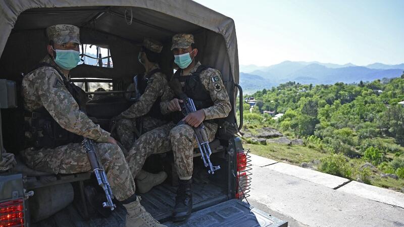 Pakistani soldiers patrol near the Line of Control, de facto border between India and Pakistan at Salohi village in Poonch district of Pakistan-administered Kashmir on April 26, 2021. Aamir QURESHI / AFP