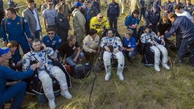Within minutes of being extracted from the Soyuz capsule the search-and-rescue team took the vitals of all three astronauts and carried them in chairs to tents. They will undergo further medical tests as they acclimate and get their "land legs back."