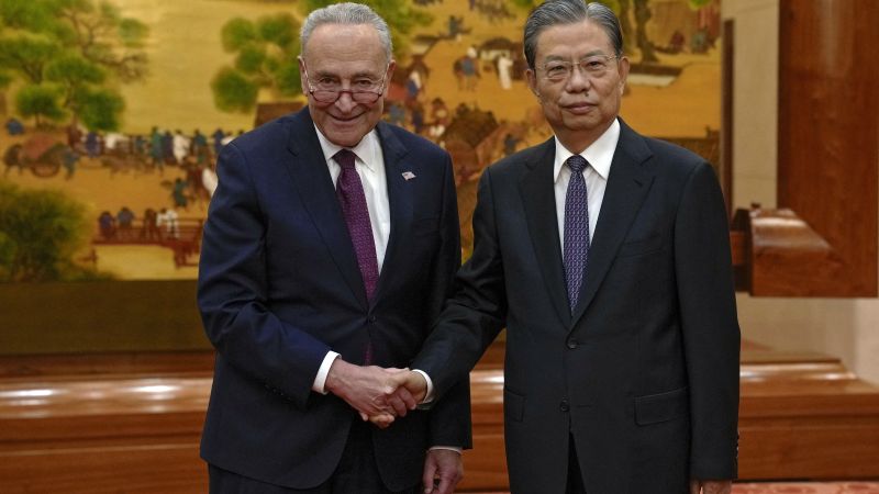 Schumer has also met with Chinese Foreign Minister Wang Yi on Monday. Wang greeted Schumer and his delegation at Beijing's Diaoyutai State Guesthouse before going into a meeting.