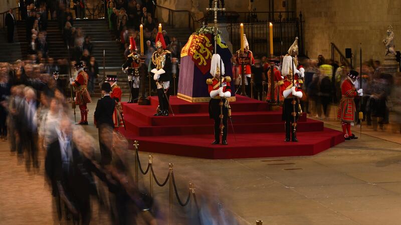 Coffin of Queen Elizabeth II Arrives at Westminster Hall