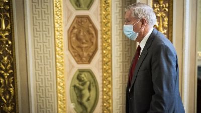 Sen. Lindsey Graham (R-SC) walks on the fourth day of the second impeachment trial of former President Donald Trump at the U.S. Capitol on February 12, 2021 in Washington, DC. Trump's defense team presented the defense that Trump should not be held responsible for the January 6th attack at the U.S. Capitol on first amendment grounds and the fact that he is no longer in office. Jabin Botsford - Pool/Getty Images/AFP