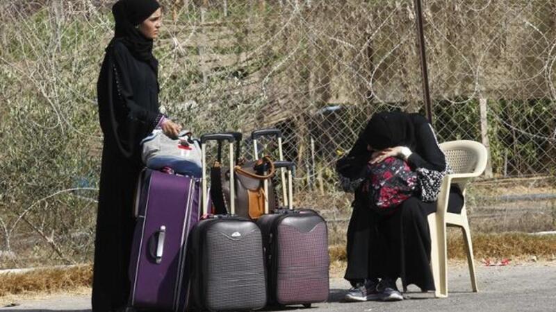 Palestinians wait near their luggage at the Rafah border terminal in the southern Gaza Strip before crossing into neighbouring Egypt on August 24, 2013. AFP PHOTO SAID KHATIB