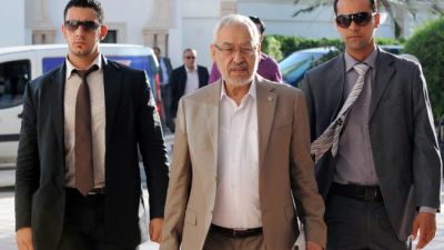 Tunisia's ruling Islamist Ennahda party's leader Rached Ghannouchi (C) arrives for a meeting as part of talks with the opposition. (Image credit: AFP)