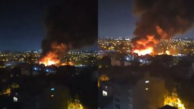 A clip showing a huge fire and smoke rising into the sky was seen.