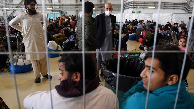 Afghan refugees are being processed inside Hangar 5 at Ramstein Air Base in Germany on September 8, 2021. Olivier DOULIERY / POOL / AFP