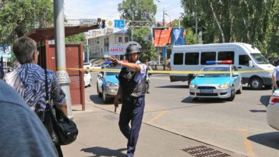 Kazakhstan's interior ministry says three policemen and one civilian have been killed in a series of shootings in the centre of the biggest city Almaty.