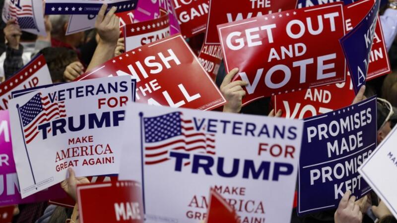 Supporters wave campaign signs during a capmpaign rally for Republican Senate candidate Mike Braun and attended by U.S. President Donald Trump. (AFP/FILE)