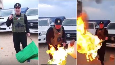 ALBAWABA - Palestinian militia leader Hussam Al-Astal was seen in a live video that was shared on Facebook burning the green flag of Hamas.