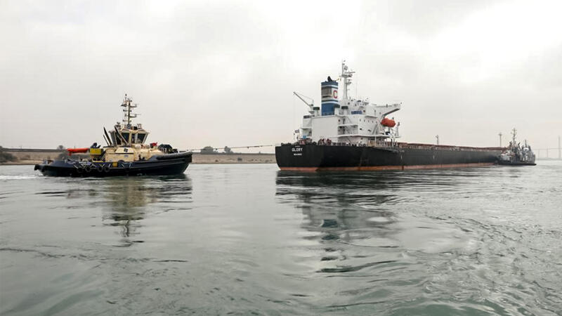 The Marshal Island-flagged Glory is laden with corn from the Ukraine and bound for China. It ran aground in the Suez Canal while crossing near the Egyptian city of Qantara.