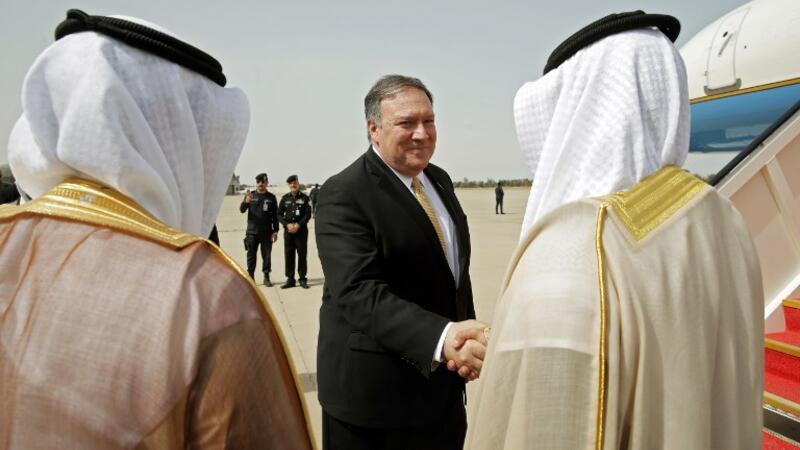 US Secretary of State Mike Pompeo greets dignitaries as he prepares to depart Kuwait City on March 20, 2019. (JIM YOUNG / POOL / AFP)