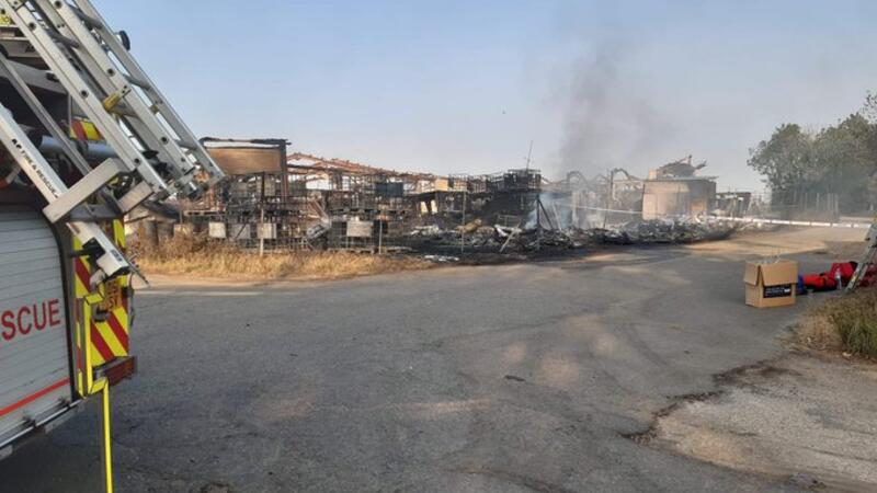 The conflagration is thought to have started when equipment overheated during a manufacturing process at a fibreglass moulding plant. Nearby residents have been advised to keep doors and windows closed due to the volume of smoke coming from the incident.