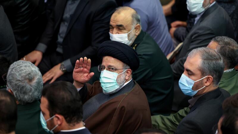Iranian President Ebrahim Raisi gestures in greeting as he attends a ceremony in the capital Tehran, on January 3, 2022, commemorating the second anniversary of the killing of top Iranian commander Qasem Soleimani and Iraqi commander Abu Mahdi al-Muhandis in a US raid in Iraq. (Photo by ATTA KENARE / AFP)