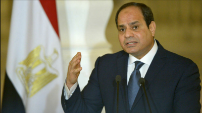 This file photo taken on March 02, 2017 shows Egyptian President Abdel Fattah al-Sisi speaking at a press conference at the Presidential Palace in Cairo. KHALED DESOUKI / AFP