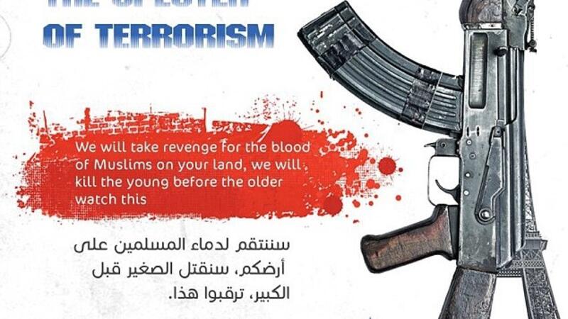The poster shows the Eiffel Tower merged with a rifle, and urges supporters to carry out lone-wolf attacks on the West.