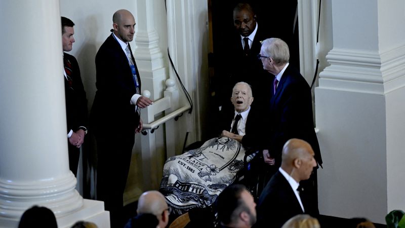 Jimmy Carter, 99, makes rare public appearance at wife Rosalynn's memorial
