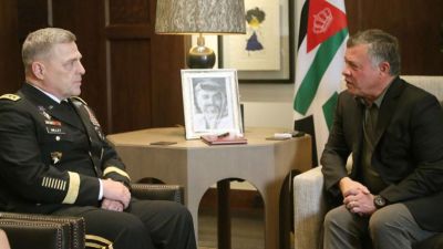King Abdullah, Supreme Commander of the Jordan Armed Forces-Arab Army, holds talks with US Army Chief of Staff Gen. Mark Milley . (Jordan Times)