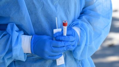 Mend Urgent Care workers wearing personal protective equipment perform drive-up COVID-19 testing at James Jordan Middle School on August 10, 2020 in Winnetka, California. The coronavirus pandemic spread quickly throughout the state, as California continues to lead the nation in number of cases. Kevin Winter/Getty Images/AFP KEVIN WINTER / GETTY IMAGES NORTH AMERICA / Getty Images via AFP
