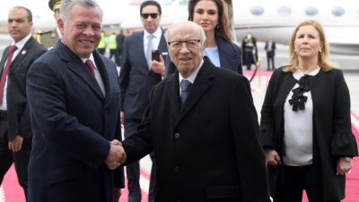 King Abdullah and Tunisian President Beji Caid Essebsi, during talks in Tunis on Sunday, agreed on the importance of bolstering economic, trade, investment, military, agricultural, and tourism cooperation.