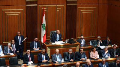 Lebanon's parliament speaker Nabih Berri presides over the first session of the newly-elected assembly at its headquarters in the capital Beirut on May 31, 2022. (Photo by ANWAR AMRO / AFP)