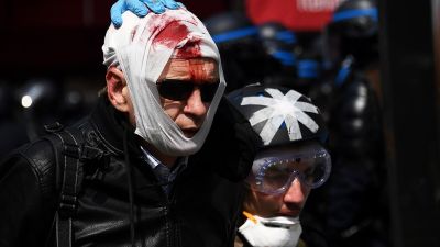 The worst early violence was outside La Rotonde, President Emmanuel Macron's favourite restaurant in Montparnasse.