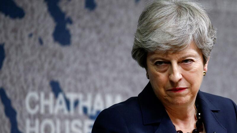 Britain's Prime Minister Theresa May speaks at Chatham House in London on July 17, 2019.  HENRY NICHOLLS / POOL / AFP