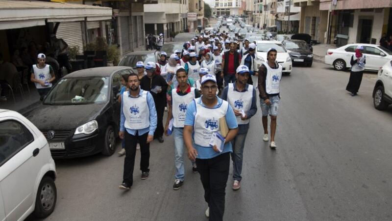 Supporters of Morocco's Party of Authenticity and Modernity take to the streets of Rabat to pass out campaign leaflets on October 5, 2016. (AFP/Fadal Senna)