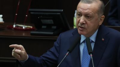 Turkish President and leader of the Justice and Development Party (AK Party) Recep Tayyip Erdogan speaks during his party's group meeting at the Turkish Grand National Assembly in Ankara on November 11, 2020. Turkish President promised on November 11, 2020 to adopt painful reforms and threw his full support behind a new economic team installed after his powerful son-in-law resigned. Adem ALTAN / AFP