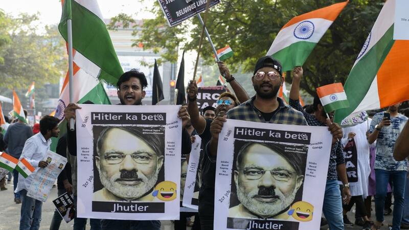 The demonstrators accused the government of Indian Prime Minister Narendra Modi of trying to divide the country along communal lines, to distract from a sharp domestic economic slowdown and job losses.