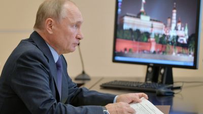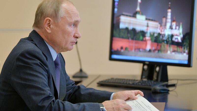 Russian President Vladimir Putin chairs a meeting with members of the government via a teleconference call at the Novo-Ogaryovo state residence, outside Moscow, on September 29, 2020. Alexey DRUZHININ / SPUTNIK / AFP