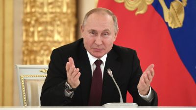 Russian President Vladimir Putin gestures during his meeting with business community at the Kremlin in Moscow, on December 25, 2019. Alexander NEMENOV / AFP