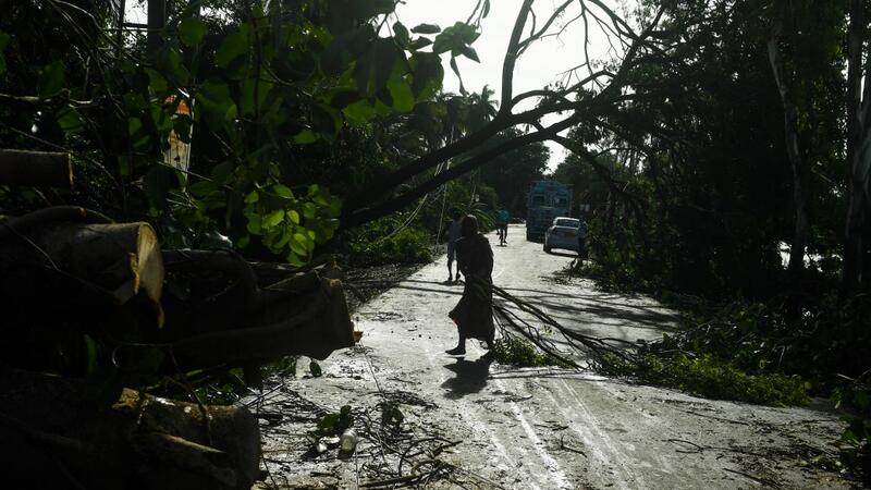 A woman removes debris from a road after the landfall of cyclone Amphan in Midnapore, West Bengal, on May 21, 2020. The strongest cyclone in decades slammed into Bangladesh and eastern India on May 20, sending water surging inland and leaving a trail of destruction as the death toll rose to at least nine. Dibyangshu SARKAR / AFP