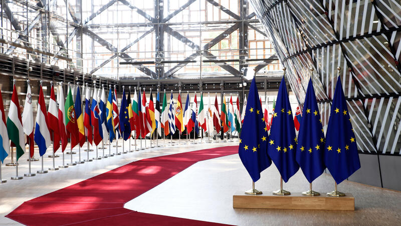 EU flags in EU Council building during the EU Summit (Shutterstock)