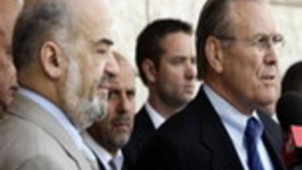 En route from Washington, Rumsfeld told reporters he would press the new Iraqi leadership to avoid delays on either the political or security front. "It's important that the new government be attentive to the competence of the people in the ministries and that they avoid unnecessary turbulence," Rumsfeld said, according to The AP.
