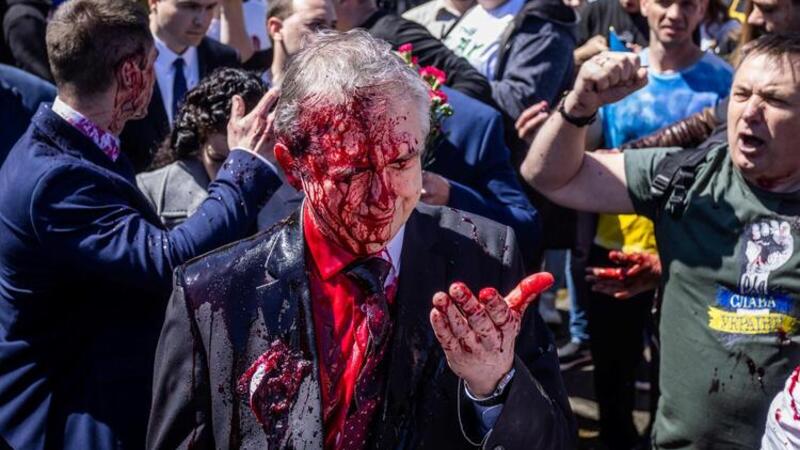 Russia's Ambassador to Poland Splattered With Red Paint