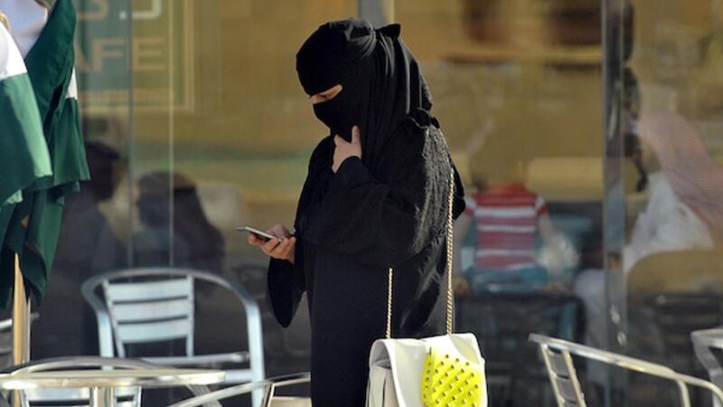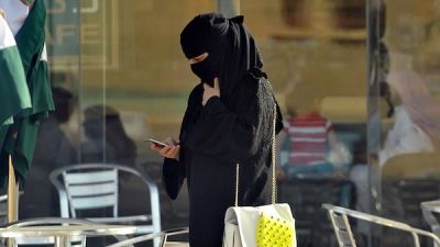 A Saudi woman looks at her mobile as she walks through a coffee shop in the capital Riyadh last week. The Saudi government has enacted a switch in the weekend in Saudi, making the working week go from Sunday-Thursday, in line with the majority of the Arab world. (AFP)