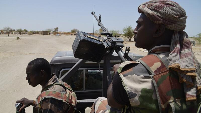 Nigerien soldiers patrol along the Niger border near the south-eastern city of Bosso. (ISSOUF SANOGO/AFP/Getty Images)