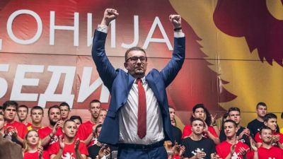 VMRO-DPMNE leader Hristijan Mickoski told the crowd that the prime minister “will do irreparable damage, from which there is no coming back. VMRO-DPMNE is against any change of the constitution with an aim to change our name.”
