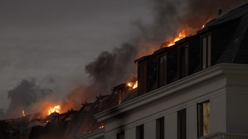 Live video footage broadcast on local television on Monday showed firefighters trying to douse the flames on the roof from the air.