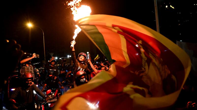 Men and women poured onto Colombo's seafront promenade and laid siege to the colonial-era Presidential Secretariat, chanting "Go home Gota" and waving the national lion flag.