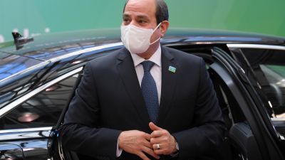 Egyptian President Abdel Fattah el-Sisi arrives for the first day of a European Union (EU) African Union (AU) summit at The European Council Building in Brussels on February 17, 2022. (Photo by JOHN THYS / POOL / AFP)