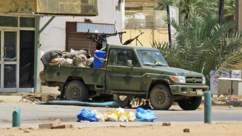 In Omdurman, just across the Nile from Khartoum, security forces were seen patrolling in trucks mounted with what appeared to be anti-aircraft and machine guns and other weapons including rocket-propelled grenades.