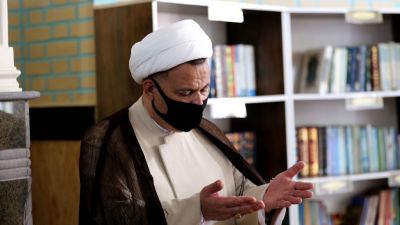 An Iranian cleric prays at a mosque in the capital Tehran, amid the ongoing novel coronavirus pandemic crisis, on July 19, 2020. Iran's president said yesterday that 35 million Iranians may contract the coronavirus, as the country still did not have herd immunity although a quarter of the population may have already been infected. The country has been battling a resurgence of COVID-19, with figures showing a rise in both new infections and deaths since a two-month low in May. ATTA KENARE / AFP