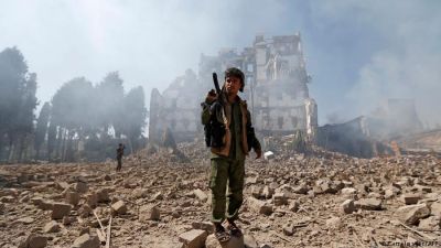 Yemeni soldier stands amongst the rubble as a result of the destructive conflict (AFP/File Photo)