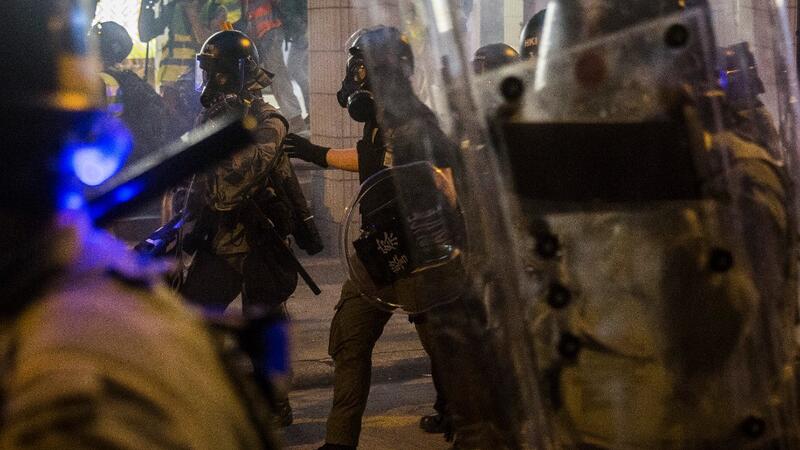 Last night police fired multiple tear gas rounds in confrontations with black-clad activists, some carrying umbrellas, in the city's Kowloon area.