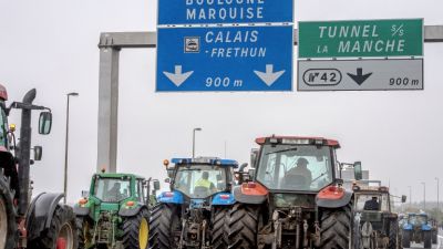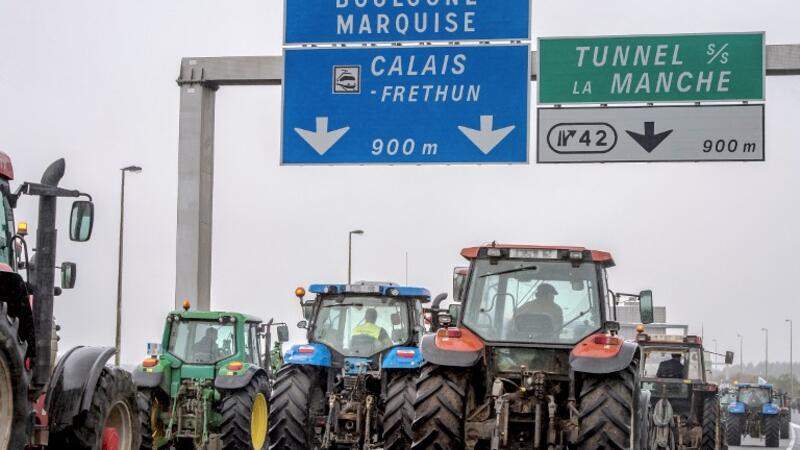 Some 70 trucks launched the joint operation on Monday to block off main routes in and out of Calais, with at least 200 farmers on their tractors joining them.